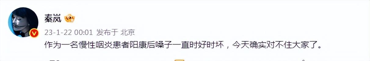 秦岚回应演小品时哑嗓:阳康未恢复(秦岚声音嘶哑)
