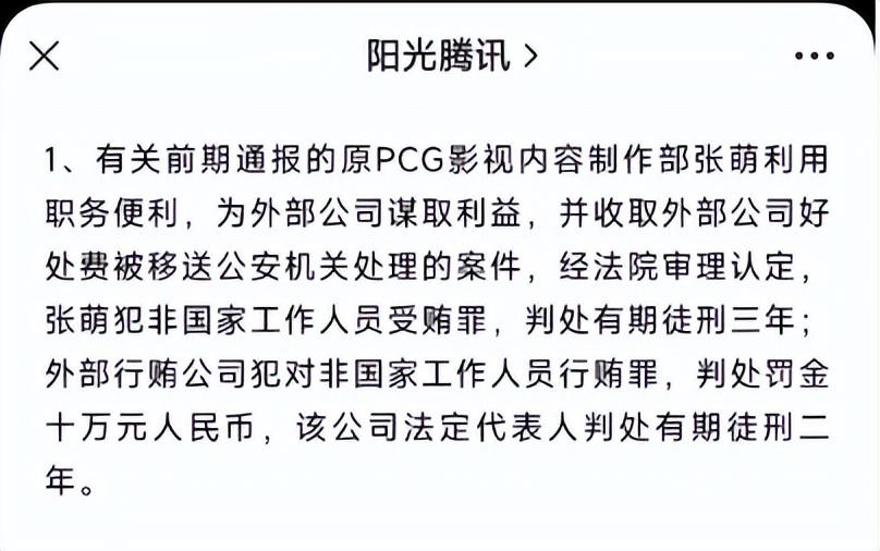原腾讯视频制片人张萌获刑三年(腾讯证实制片人张萌涉案,已移交司法机关)